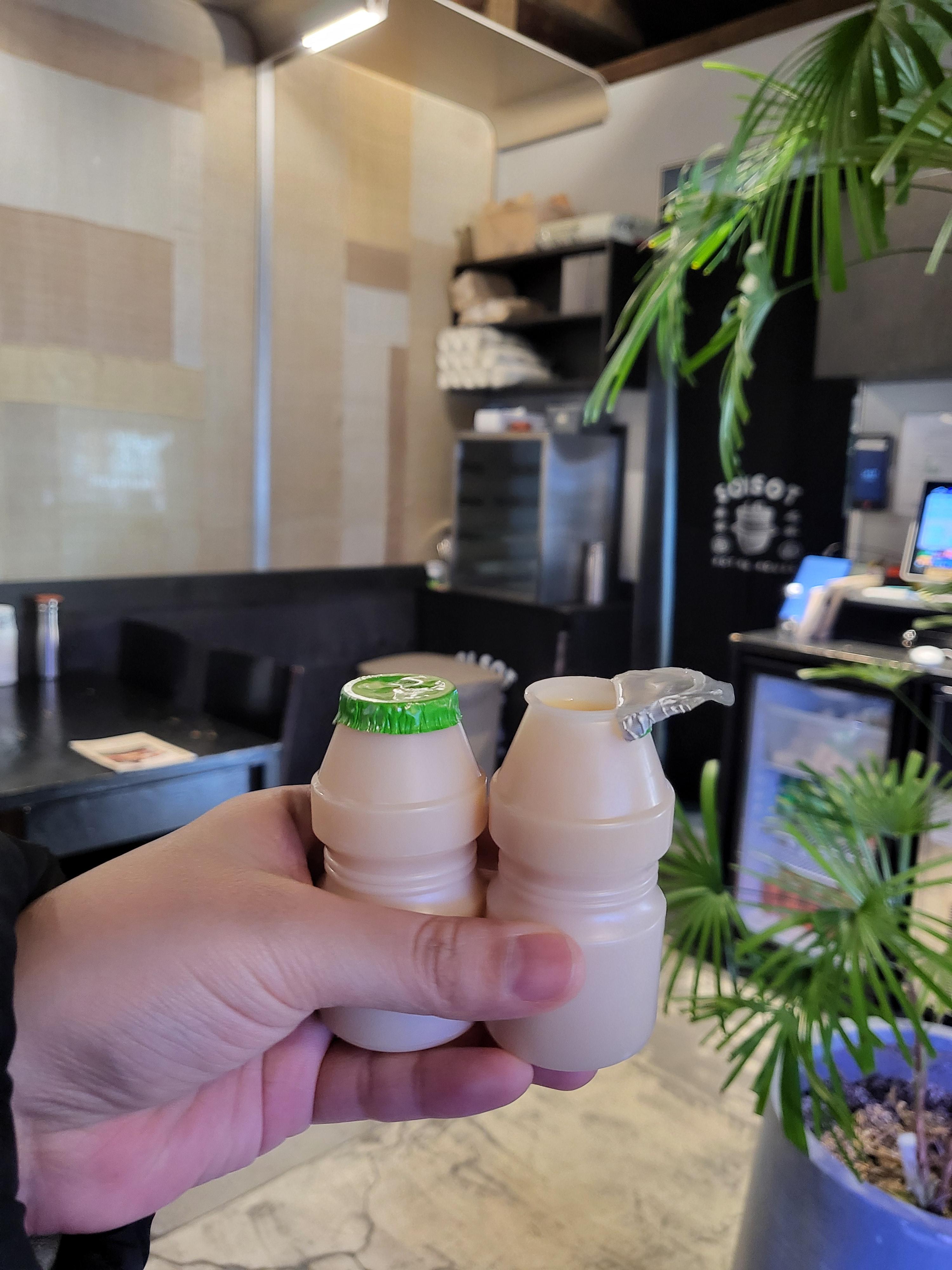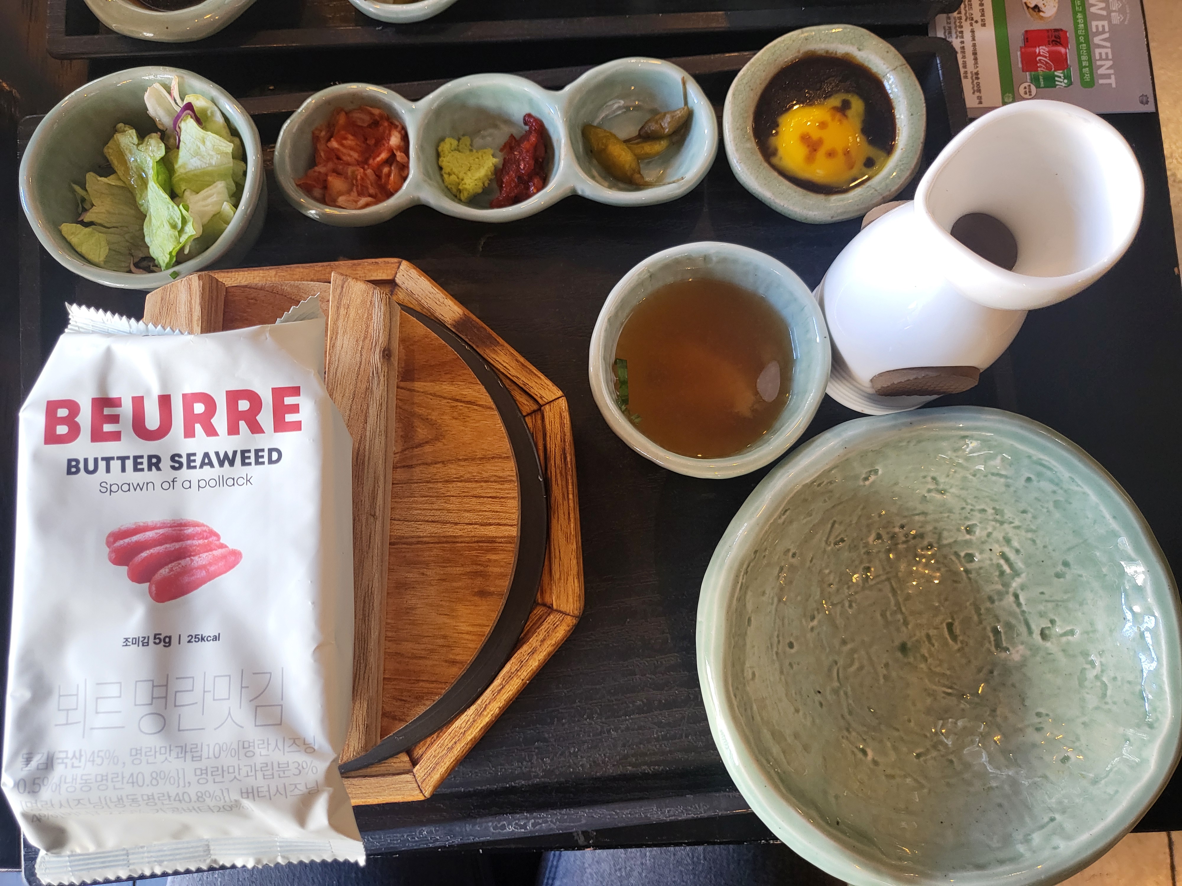 딸은 스테이크 솥밥, 저는 대파 차돌 솥밥을 주문했습니다. 주문할 때 명란김으로 변경하면 500원이 추가된다고 하더라고요. 명란김을 맛보기 위해 명란김을 달라고 했습니다.