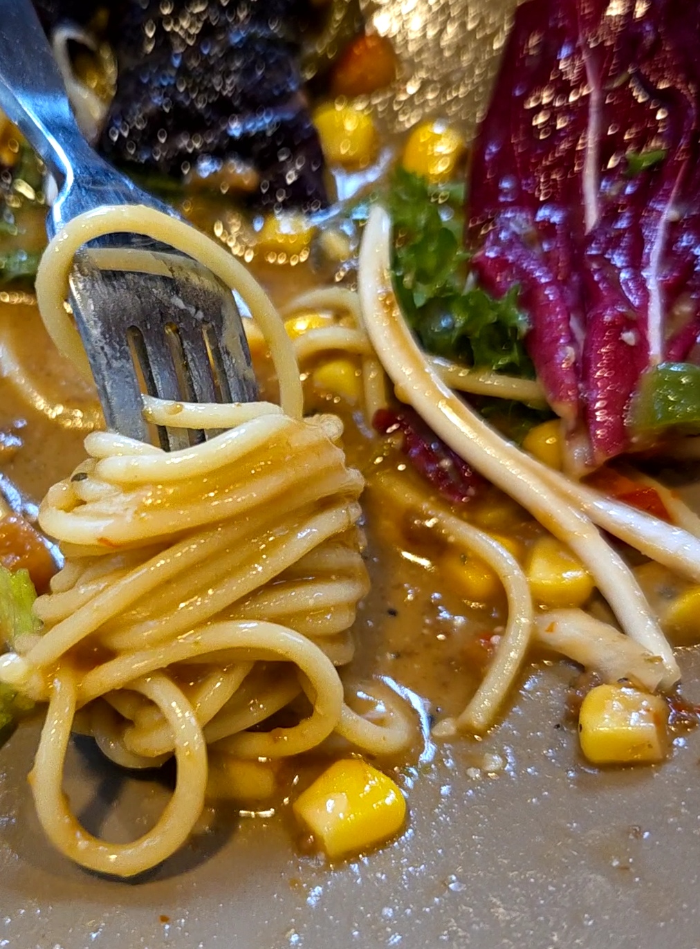 스파게티를 포크에 돌돌말아서 바닥에 깔린 소스를 묻혀먹으니 풍미가 더욱 살았습니다.