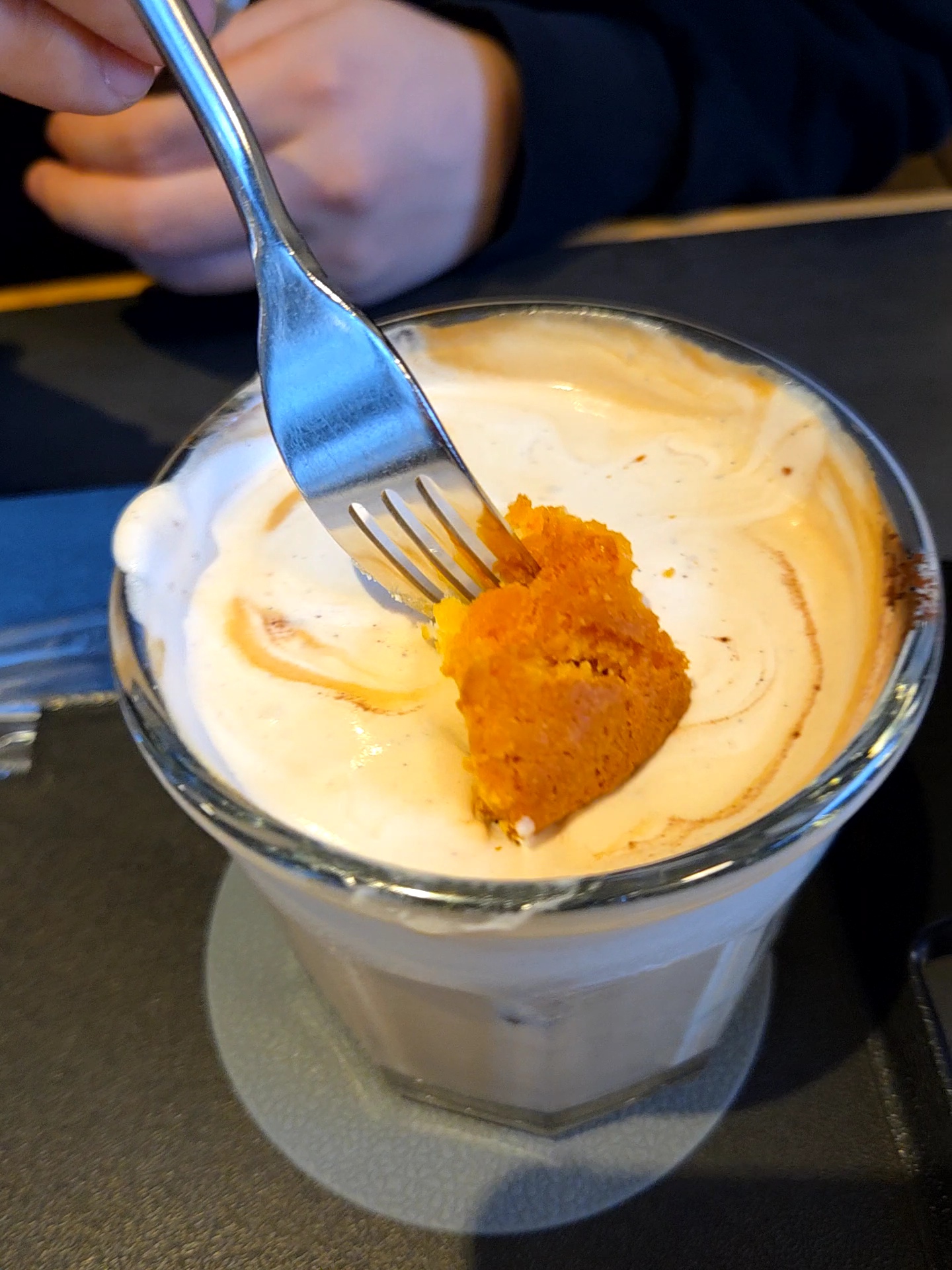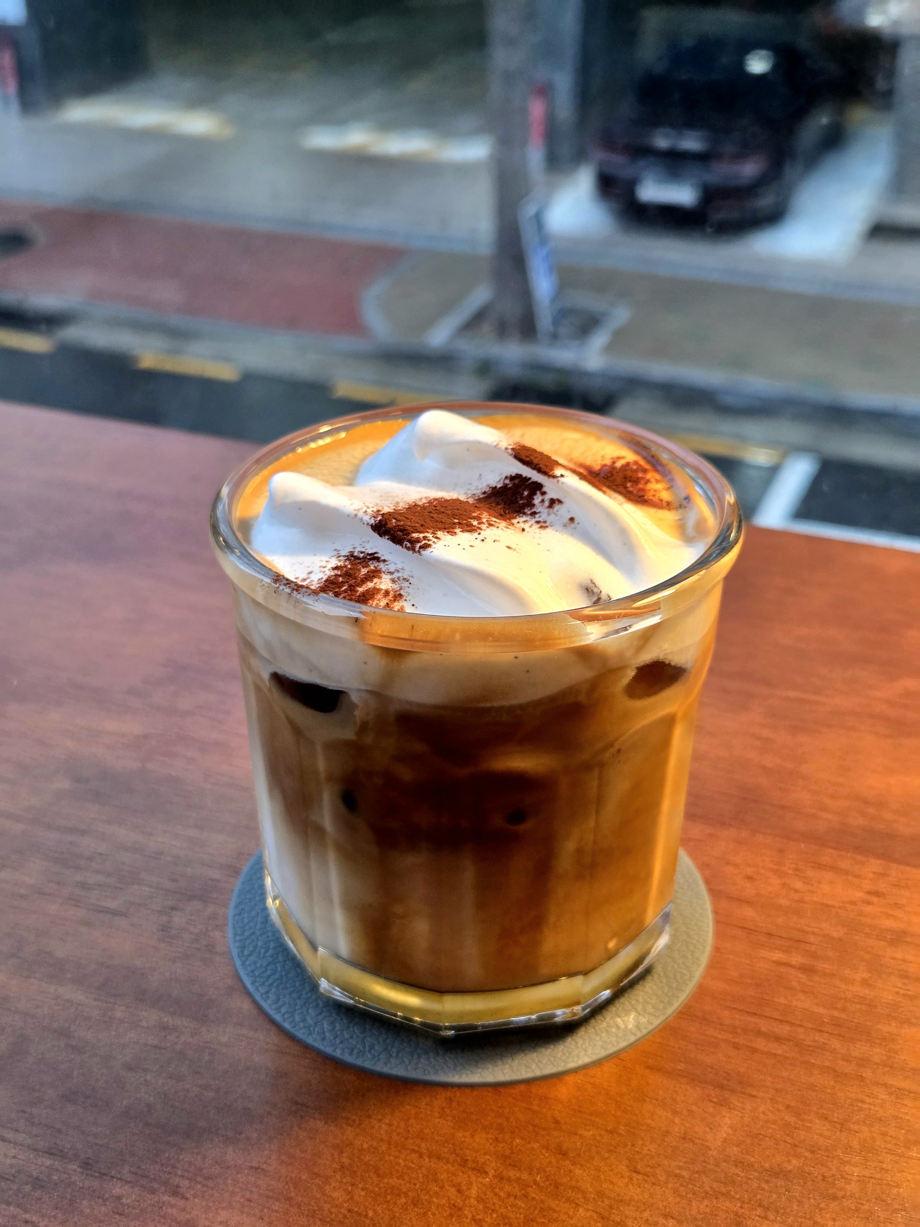 고소한 땅콩크림 위에 진한 에스프레소가 올라간 이 메뉴는 아인슈페너 특유의 부드러운 단맛과 진한 커피 맛이 조화를 이루고 있었습니다. 한입 머금을 때마다 땅콩의 고소함과 에스프레소의 쌉싸름한 맛이 입안에서 어우러졌습니다.