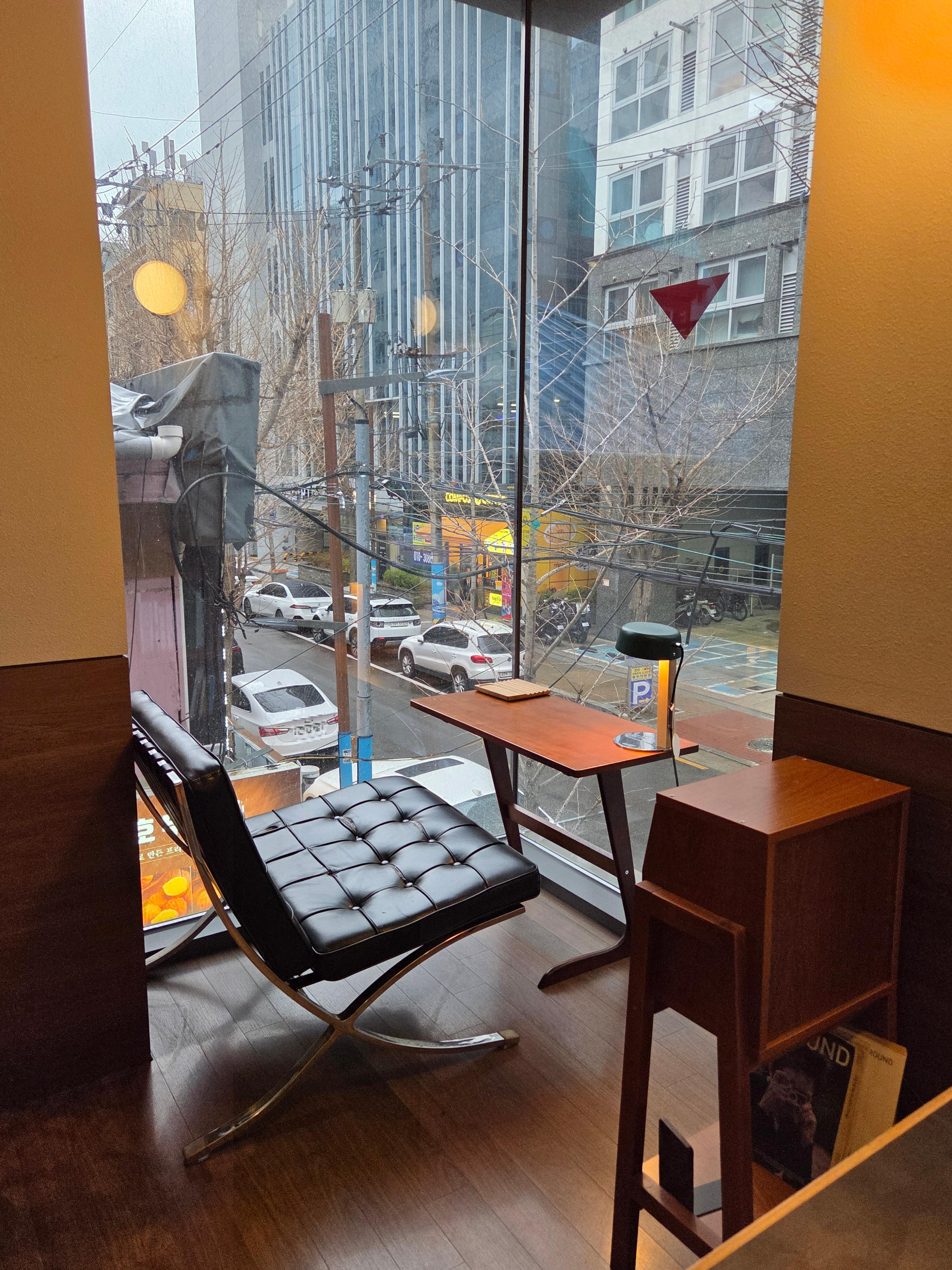창가 자리에 앉아 여유롭게 커피와 디저트를 기다리는 이 순간이 너무나 평온했습니다.
